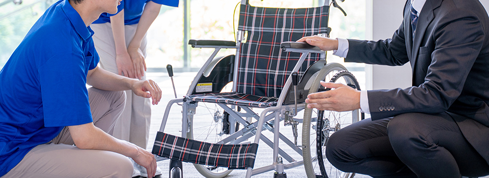 レンタルサービスの利用開始後は、ご利用者に定期的に訪問し、ご利用状況や福祉用具・介護用品の状態を点検・確認し、故障や不具合を未然に防ぎます。ご利用者の身体や生活状況、お気持ちの変化による用具のご提案や機種の変更にも迅速に対応いたします。また、万一故障や不具合などが起きた場合には、速やかに修理・交換いたしますのでご連絡ください。